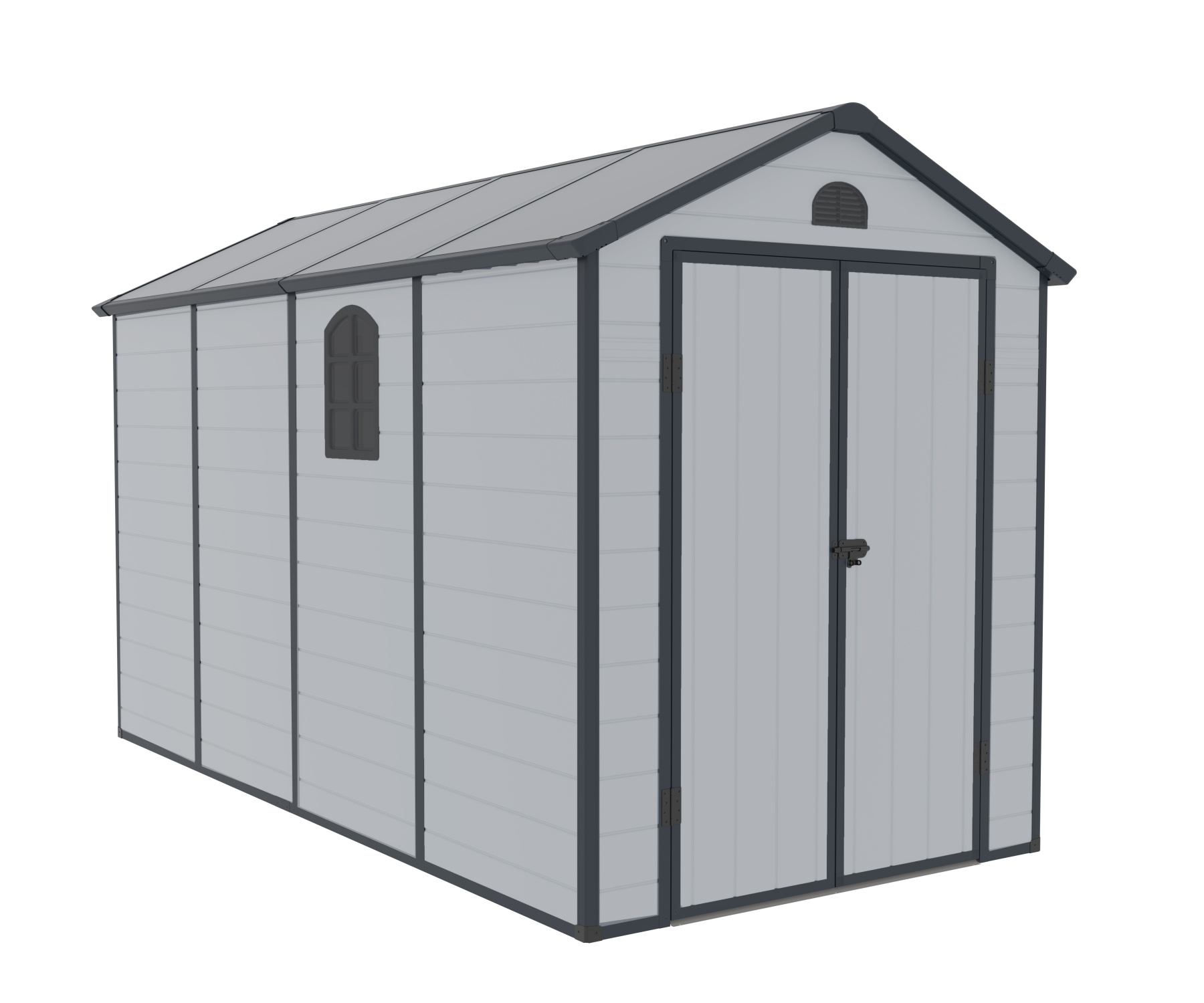 Elegantní designově zajímavý plastový domek LONGFORD 612. Prakticky bezúdržbový zahradní domek využijete pro uskladnění zahradního nářadí, jízdního kola, sekačky, příslušenství k bazénu, dřeva atd. S moderním designem a snadnou montáží je tento domek připraven poskytnout vám praktický a stylový uložný prostor po celý rok.
