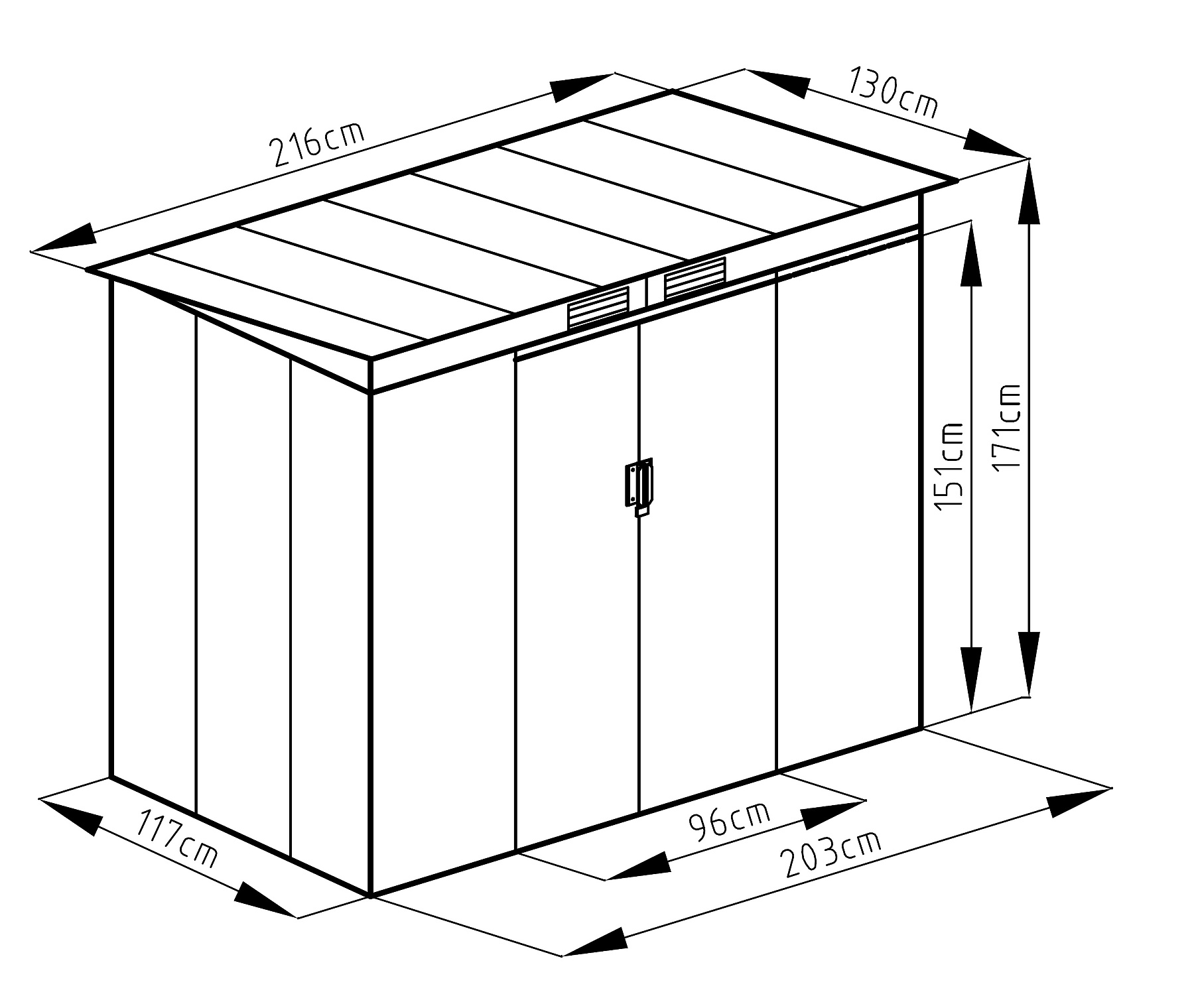 Praktický a odolný kovový zahradní domek HALLE 74 s pultovou střechou je ideálním úložištěm pro vaše zahrádkářské, sportovní, bazénové, grilovací, campingové nebo motoristické potřeby.