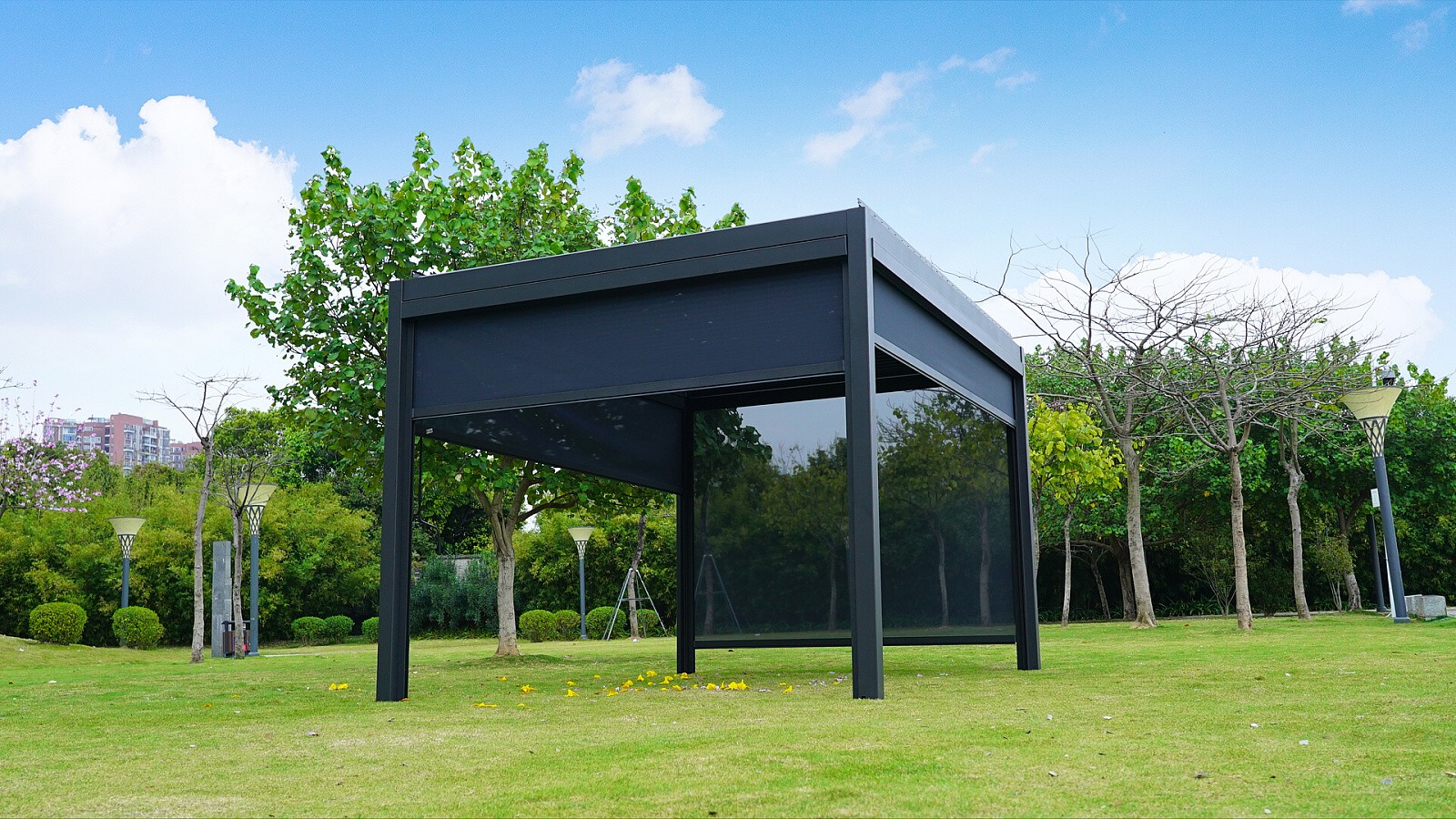 - při silném větru a jiných nepříznivých podmínkách by měla být vytažená nahoru do pouzdra, aby nedošlo k poškození rolety nebo celé pergoly