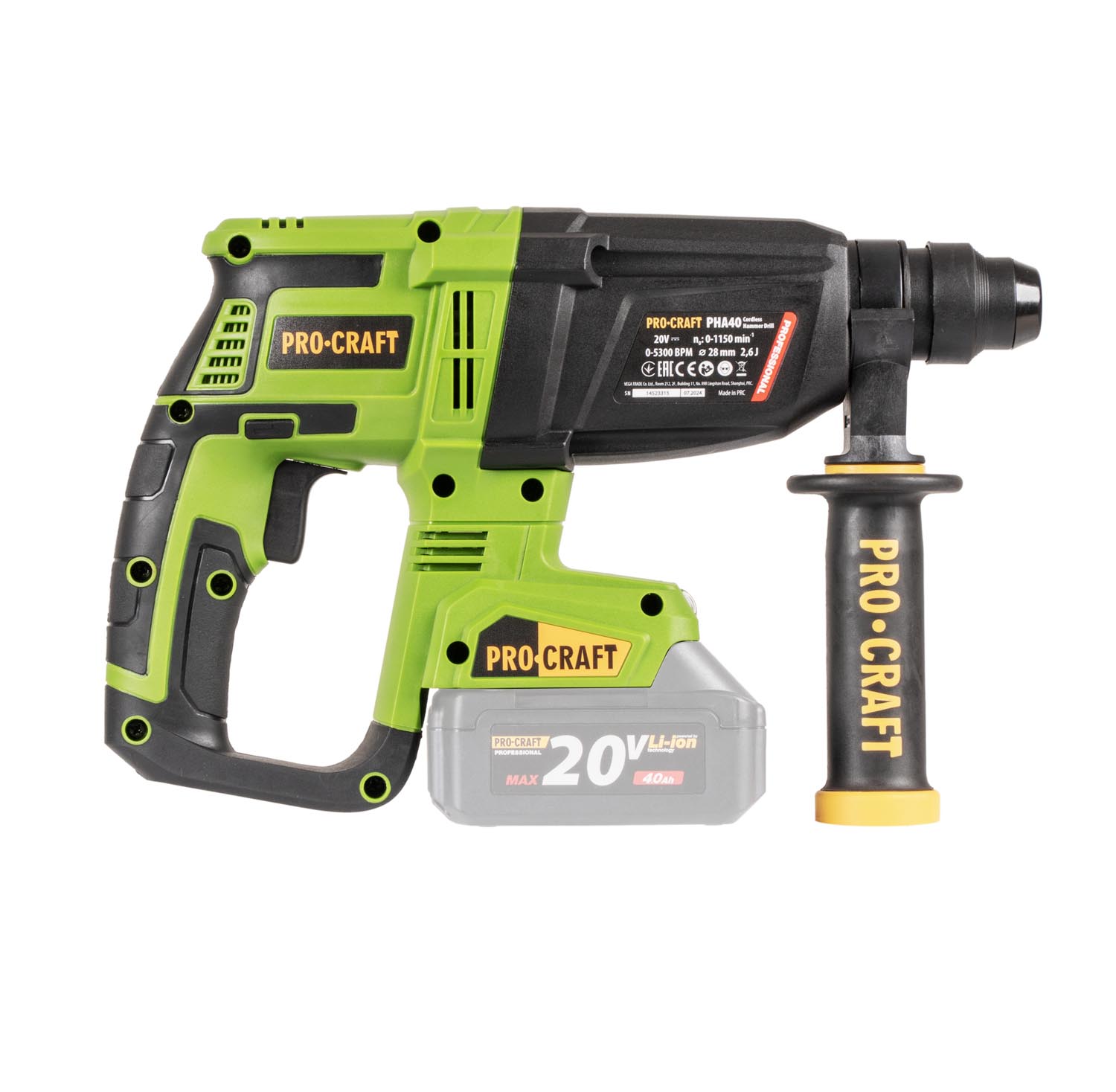 Procraft PHA40bb 20V - akumulátorové vrtací kladivo (bez akumulátoru a nabíječky)