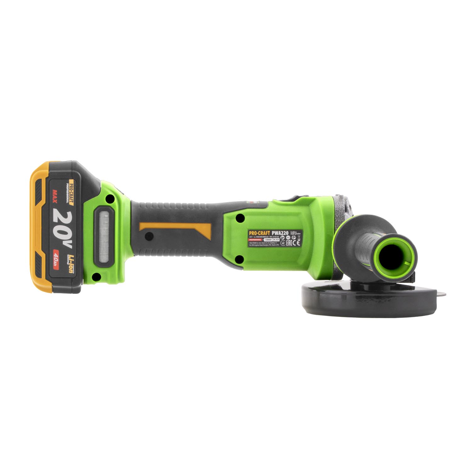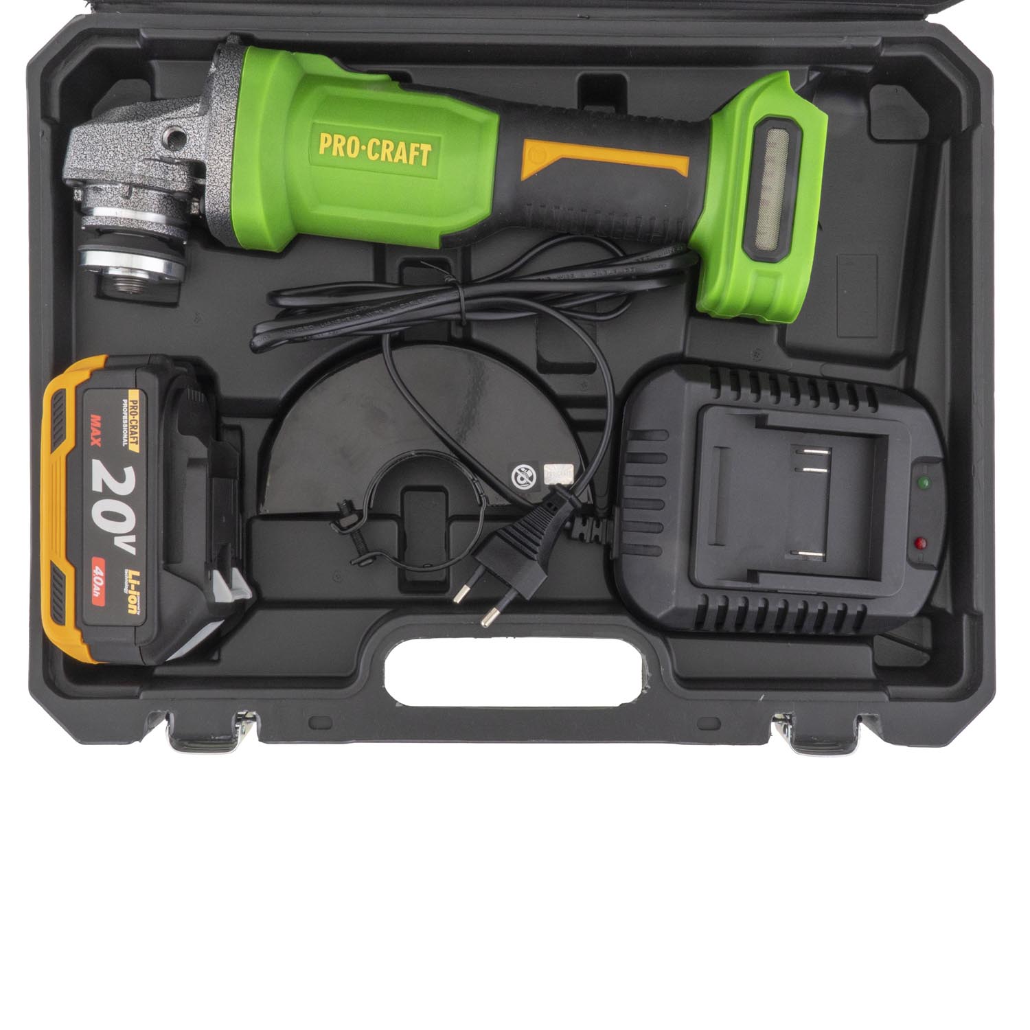 Procraft PWА220 - akumulátorová úhlová bruska (s 4,0 Ah akumulátorem a nabíječkou)