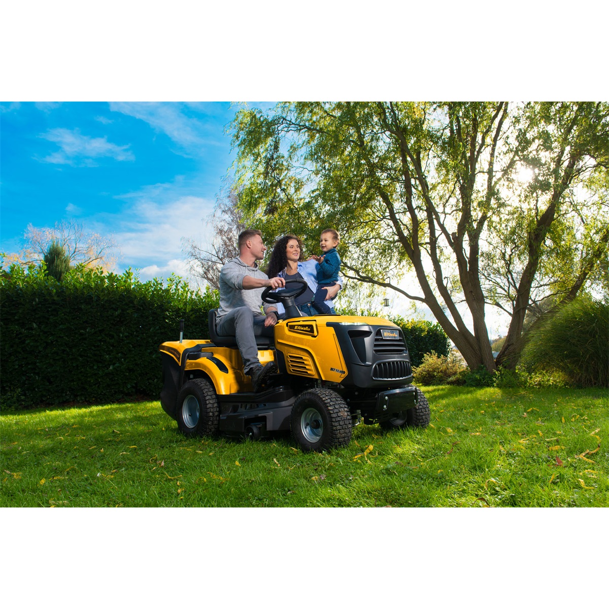 - velká kola (vpředu 15" a vzadu 18") pro lepší komfort jízdy, překonávání nerovností a ochranu trávníku