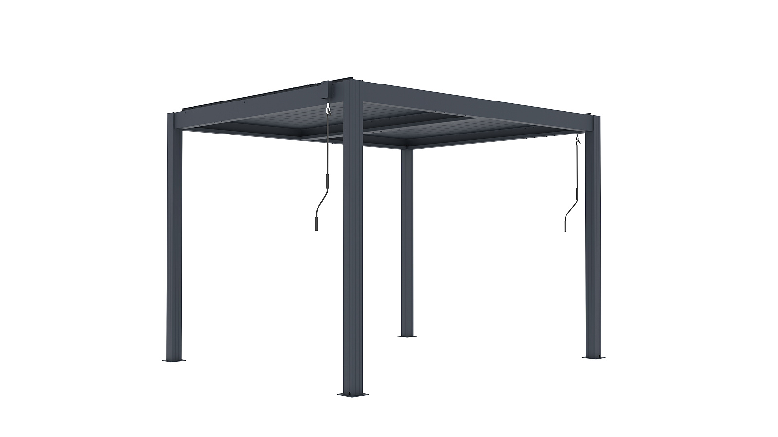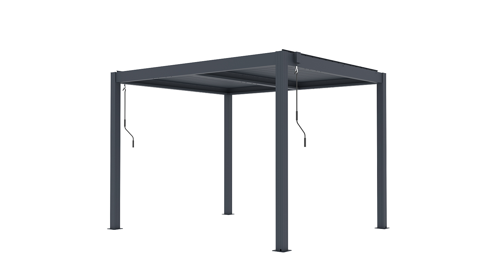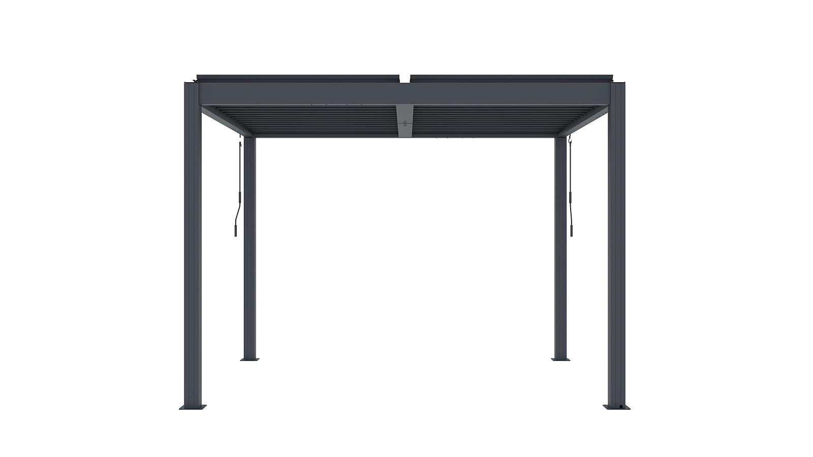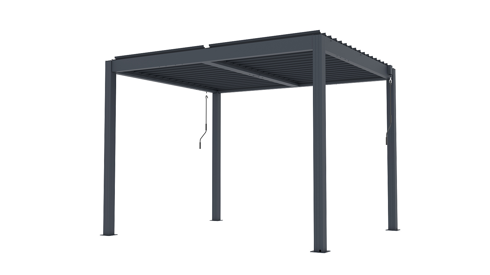 Základní verze bioklimatické pergoly LANITPLAST BIOCLIMATIC BASIC s vodorovnou lamelovou střechou a manuálním ovládáním střešních lamel. Jedná se o základní verzi pergoly, která má konstrukci z hliníku a střechu složenou z desítek otočných ocelových lamel. Lamely je možné manuálně klikou otáčet v úhlu 0 až 110o. Malá ruční klika ovládá mechanismus střechy, přičemž jejím otáčením umožňujete plynulé a synchronizované nastavení lamel. Každou stranu pergoly lze ovládat samostatně, což umožňuje individuální nastavení střešních lamel dle potřeby v závislosti na úhlu dopadajícího slunečního světla. Úhel natočení 90o zajistí otevřenou střechu a úhel 0o uzavřenou střechu. Konstrukce pergoly je vyrobená z odolné hliníkové slitiny a je nastříkaná práškovou vypalovanou barvou komaxit odstín antracit, a proto perfektně odolává přírodním klimatickým vlivům. Střešní lamely jsou vyrobené z ocelového profilu ošetřeného vypalovanou barvou komaxit ve stejném odstínu antracit.