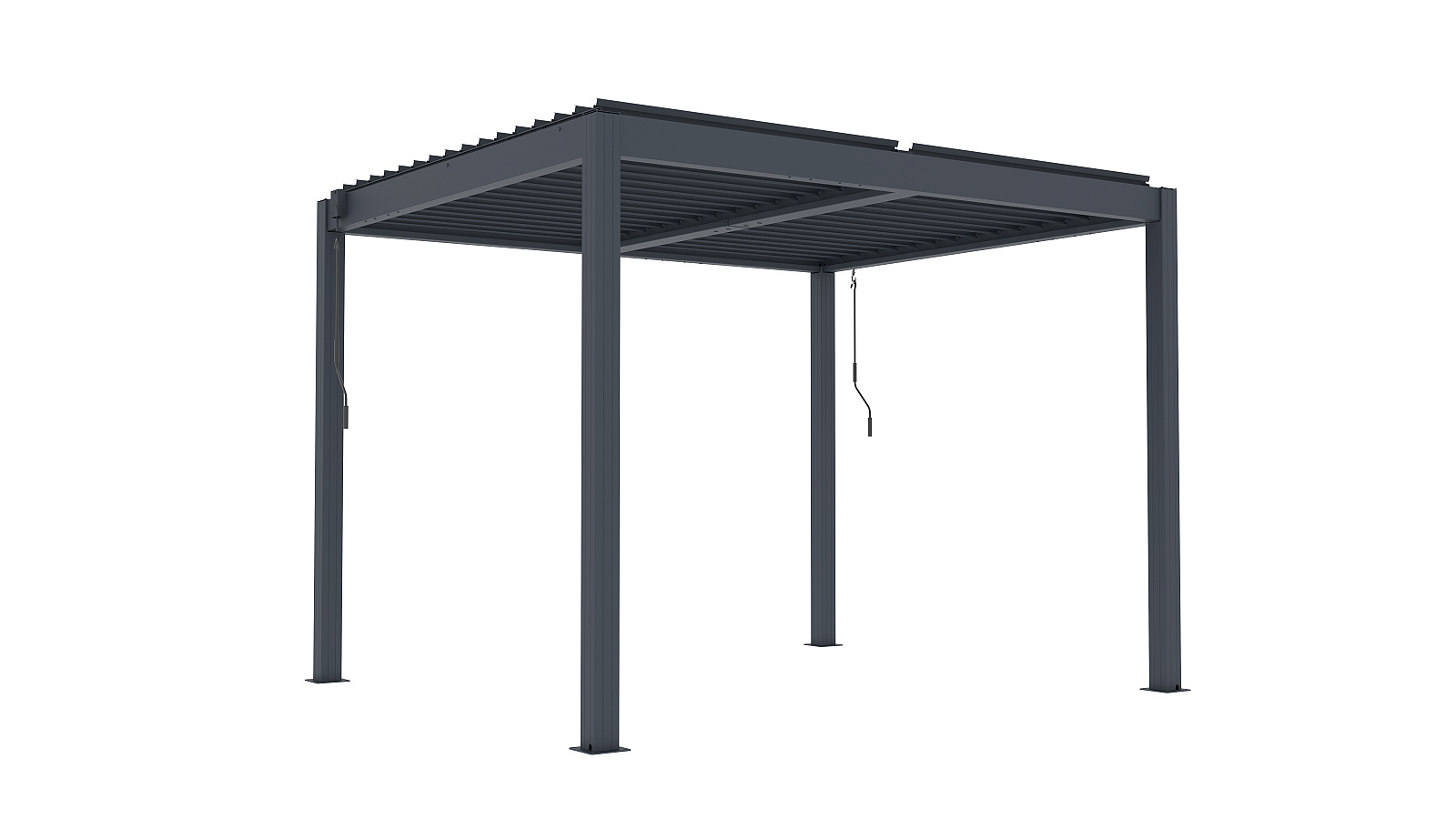 - celá pergola je opatřena lety osvědčenou povrchovou úpravou, práškovou vypalovanou barvou komaxit v moderním ANTRACITOVÉM odstínu (RAL 7016), což ve spojení s kvalitními materiály pergoly zajišťuje její dlouhou životnost a prakticky bezúdržbovost