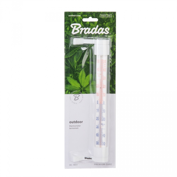 Venkovní teploměr okenní Bradas WHITE LINE pro měření vnějších teplot v rozmezí od -50 do +50 °C. Jednoduchá montáž - lepící páska na držácích umožňuje rychlé připevnění teploměru na svislý povrch, nebo jej lze přišroubovat ke stěně či na okno díky montážním otvorům. Teploměr má velká, snadno čitelná čísla.