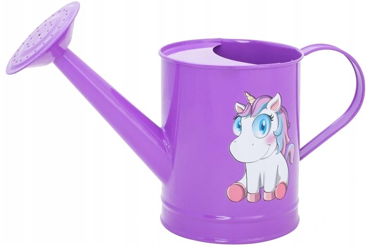Dětská konev s obrázkem jednorožce potěší každého malého zahrádkáře, který se musí starat o své rostlinky. Konvička je vyrobená z kovu a dostupná ve dvou krásných pestrých barvách. Ideální k použití na zahradě, na písku nebo třeba na hraní u moře.