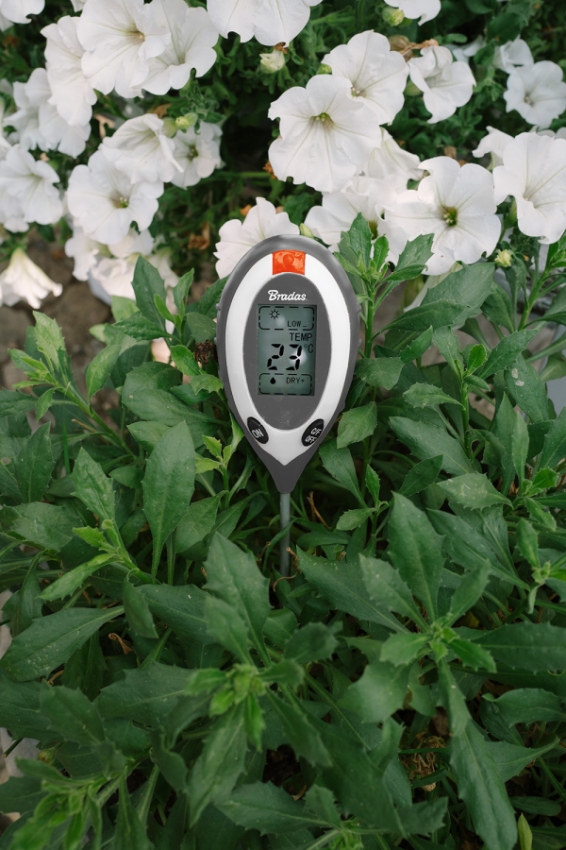 Zařízení Bradas WHITE LINE - LCD se 4 funkcemi změří pH půdy, její teplotu, vlhkost a intenzitu slunečního záření. Je tak velmi užitečným pomocníkem při pěstování mnoha druhů rostlin a zeleniny.