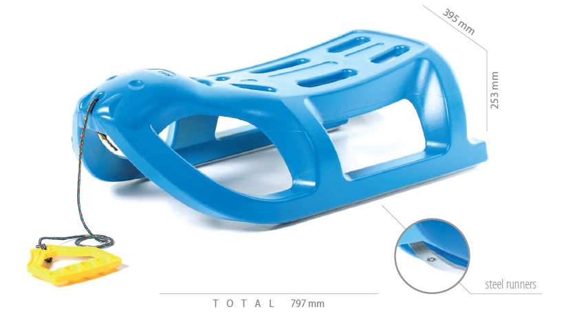 Dětské sáně SEA LION s kovovými lyžnicemi a skvělými jízdními vlastnostmi, které vydrží mrazy až do -18°C. Sáňky mají i tahací šňůru s plastovým držátkem pro jejich pohodlné tažení i do kopce.