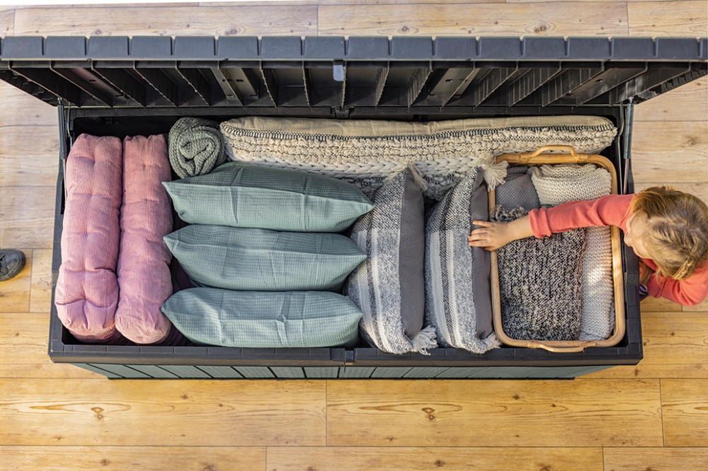 Zahradní box Darwin kombinuje velmi odolnou konstrukci s elegantním designem. Je vyroben z inovativního materiálu EVOTECH™, který je odolný vůči povětrnostním vlivům a UV záření. Rustikální textura připomínající dřevo a stylová dvoubarevná kombinace jsou dalšími estetickými přednostmi produktu. Díky své velké kapacitě se do boxu Darwin vejdou polštáře a další doplňky, které vám pomohou udržet pořádek na vaší terase nebo zahradě. Mechanismus, který usnadňuje otevírání, je nepochybnou výhodou tohoto produktu. Uzamykatelné víko umožňuje v případě potřeby ponechat box pevně zavřený. Díky silné konstrukci lze box použít také jako sezení pro dvě osoby. Vhodný jako doplněk domků Darwin.