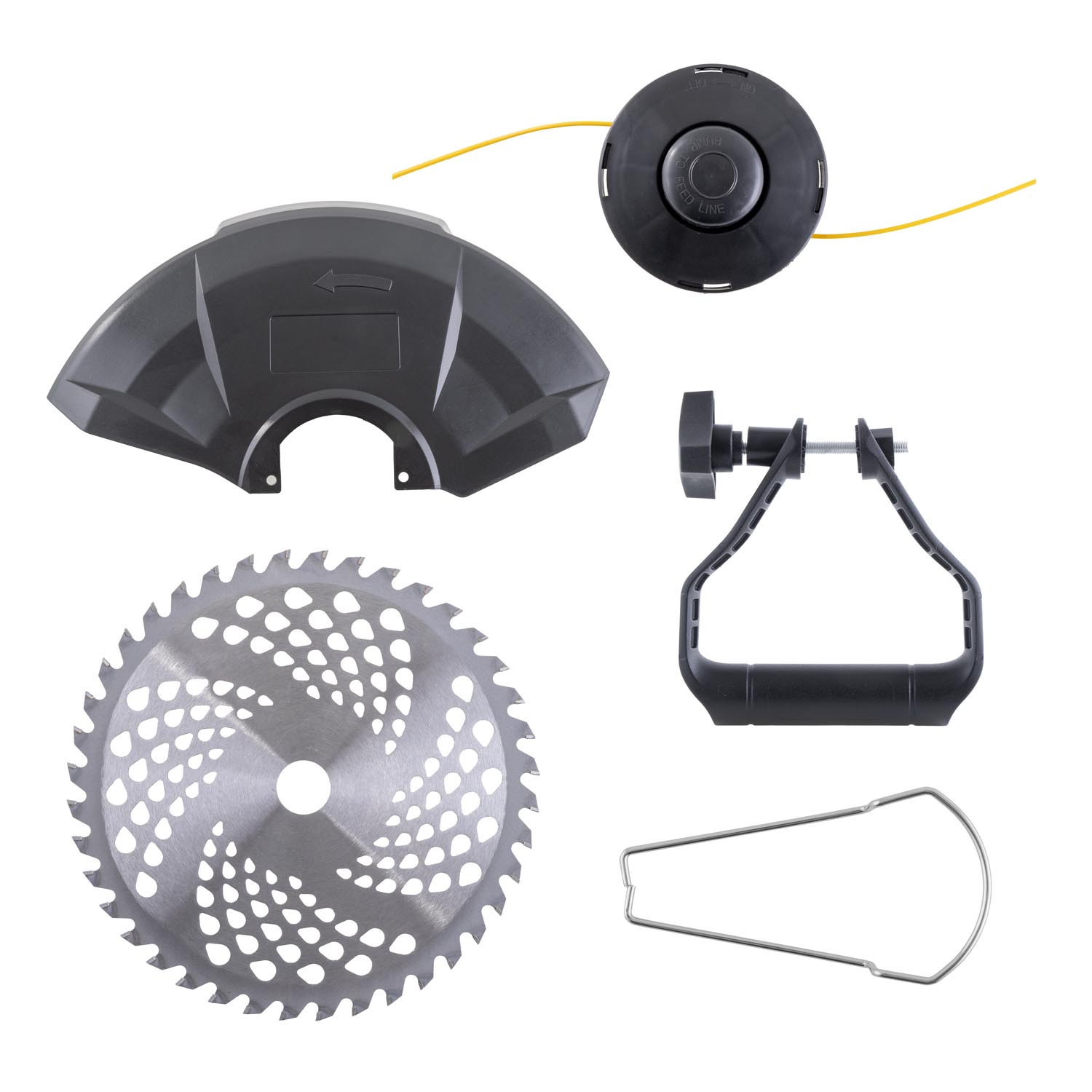 - Dodáván s ocelovým kotoučem pro náročnější práci a strunovou hlavou pro sečení trávy.