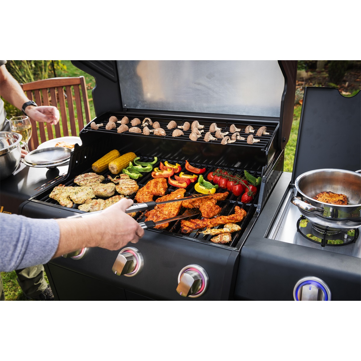 integrovaný držák na plynovou láhev uvnitř grilu. Jeho velikost (jako jeden z mála na trhu) mu dovolí pojmout i velké 10 kg plynové lahve.