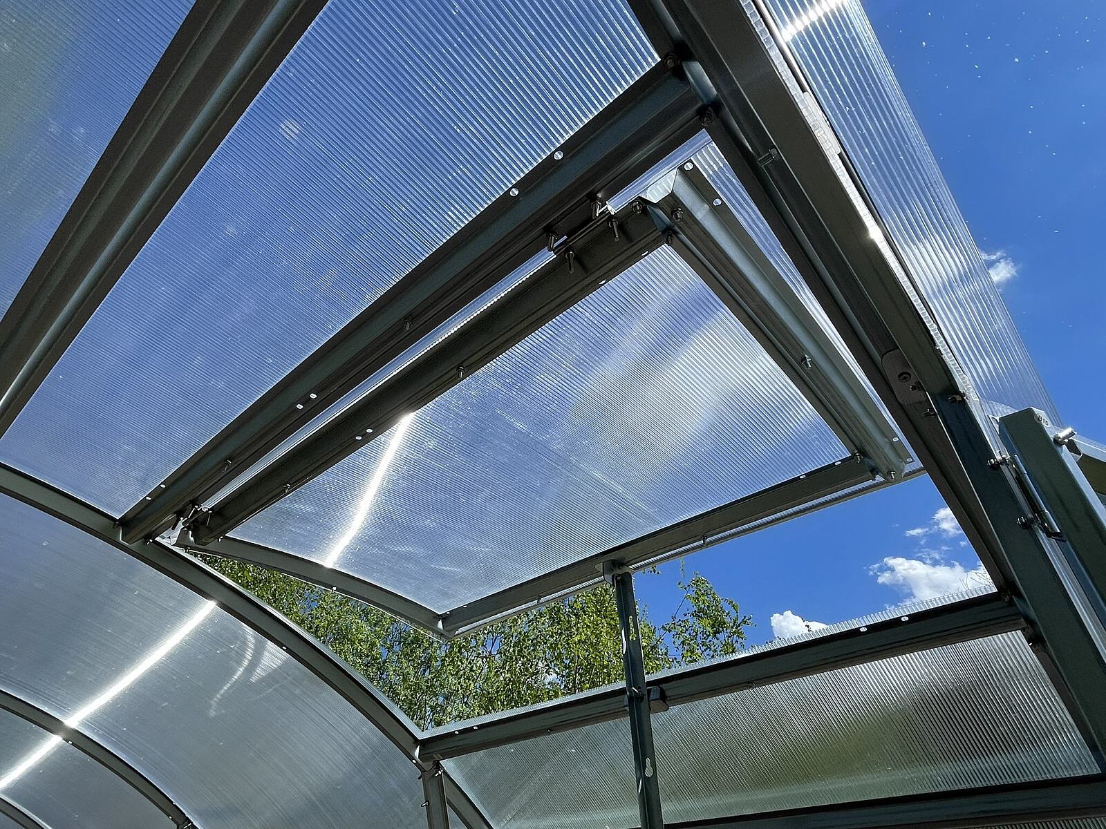 - skleník je vyrobený z ocelových profilů o 10 mm širších než dosud (šířka profilů se zvýšila z 45 mm na 55 mm)