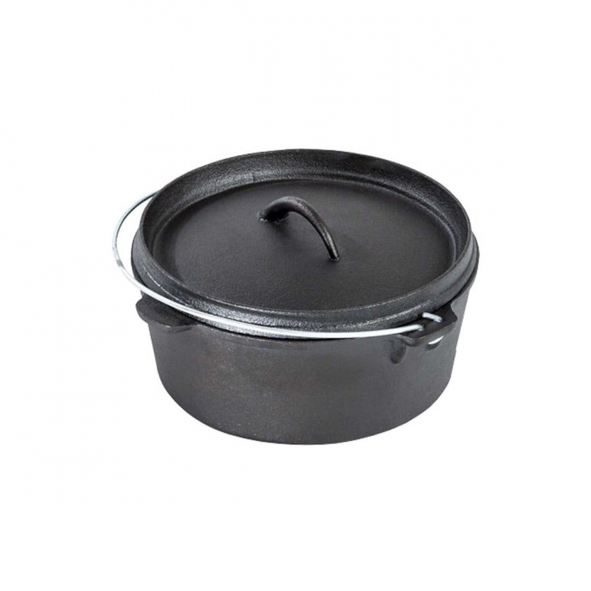 Díky litinové složce nádobí je teplo rovnoměrně rozloženo uvnitř nádobí a jídlo je připravováno stejně ze všech stran. Bez ohledu na to, zda vaříte, pečete nebo smažíte svá oblíbená jídla. S pomocí této sady nádobí mají pokrmy vynikající chuť a způsob použití sady nádobí je velmi jednoduchý. Pod misku položte žhavé uhlíky nebo brikety a speciální kulinářský zážitek zaručený jeho používáním může začít.