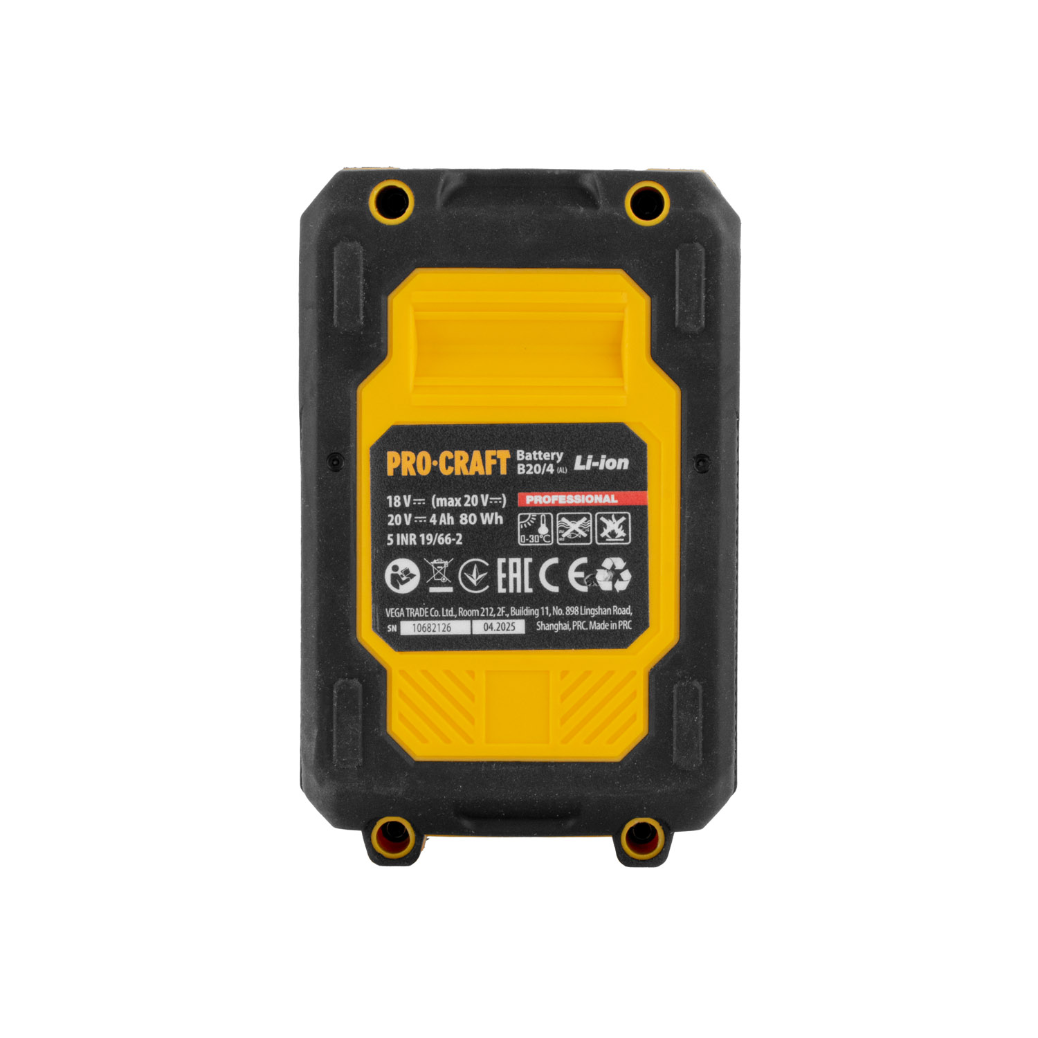 Sada obsahuje dvě baterie Procraft 20V 4Ah s ochranou proti přehřátí a vybití a nabíječku. Ideální doplněk pro nepřerušovanou práci s aku nářadím Procraft.