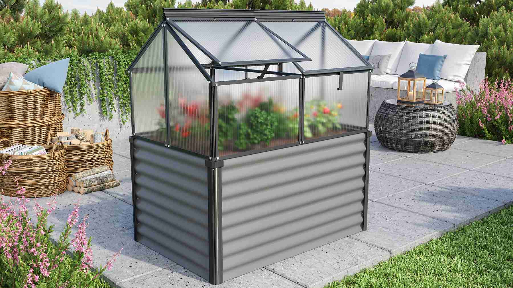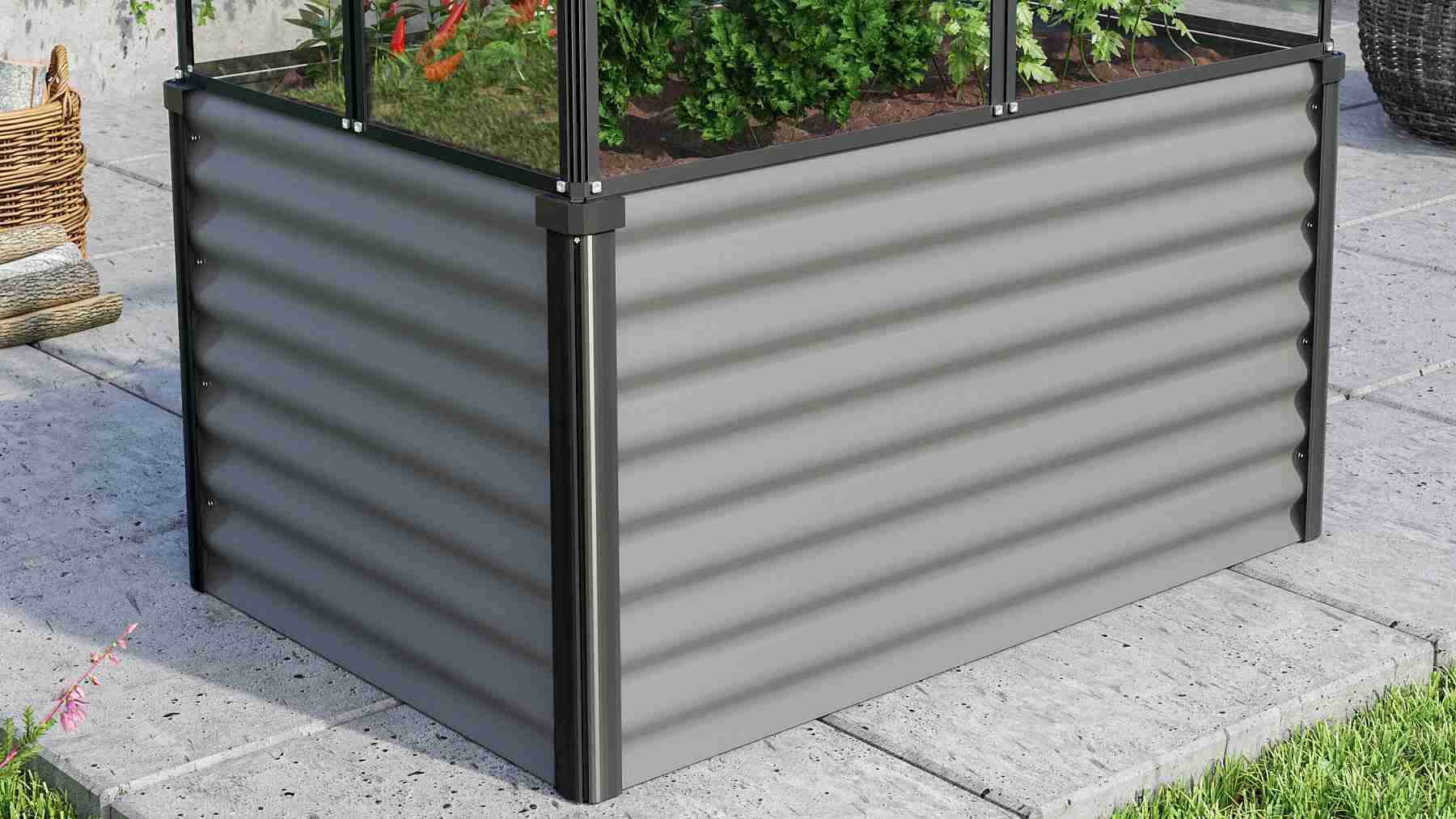 - vyvýšený záhon je vyroben z osvědčeného materiálu Zincalume (ocelový plech potažený vrstvou slitiny zinku a hliníku)