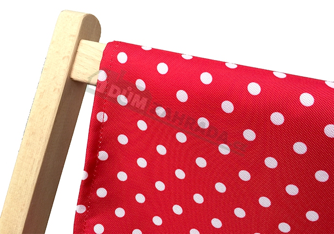 Klasické dřevěné zahradní lehátko v retro stylu, červené s bílými puntíky. Ideální pro relaxaci na zahradě, terase nebo u vody. Vysoce kvalitní konstrukce vyrobená z bukového dřeva je lehká a skladná. Potah z polyesterové tkaniny . Může sloužit i jaký výborný doplněk terasy pro zahradní restaurace a bary. Potah je snadno sejmutelný pro snadné čištění nebo výměnu.