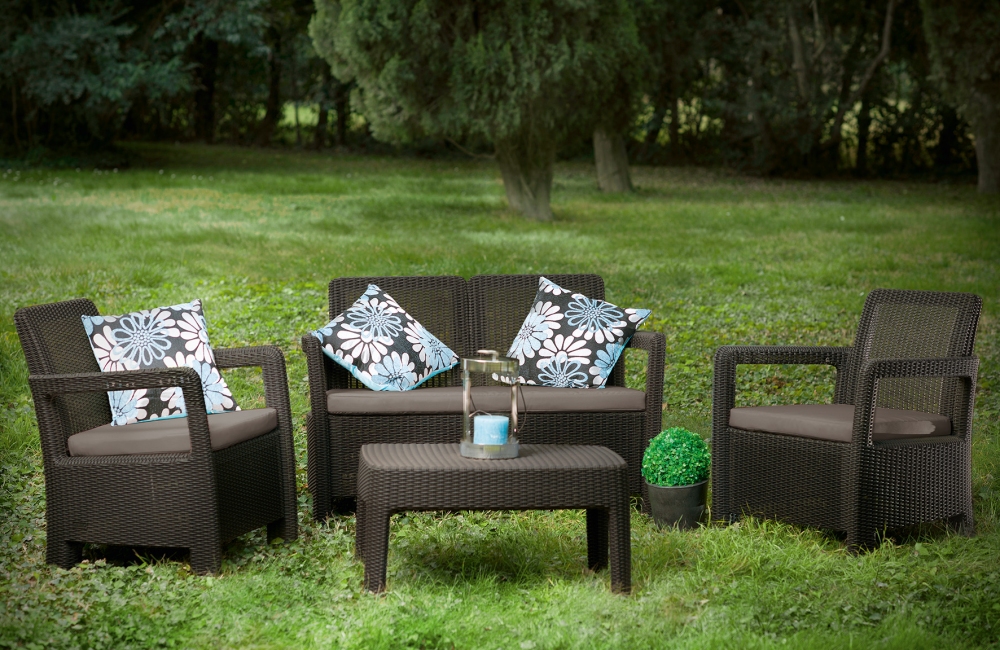 Zahradní set KETER TARIFA Lounge set v hnědé barvě je nábytkový set s jemně zaoblenou povrchovou texturou imitující přírodní ratan. Set se skládá ze dvou křesel, jedné dvoumístné pohovky (s pohodlnými podsedáky) a obdélníkového stolu. Tarifa Lounge set je tak ideální nábytek pro pořádání rodinného grilování nebo pro zahradní párty s přáteli. Nábytek se vyznačuje dlouhou trvanlivostí a odolností vůči nepříznivým povětrnostním podmínkám a UV záření, takže si po dlouhou dobu udrží svůj původní vzhled i tvar. Díky odolnému plastu, ze kterého je vyroben, nevyžaduje téměř žádnou údržbu a jeho montáž zvládne každý.
