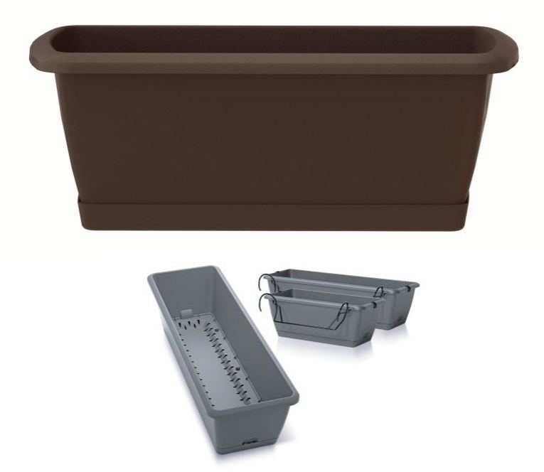 Lehký plastový truhlík se zavlažovacím systémem a držákem vhodný pro celoroční použití venku i v interiéru. Jeho povrch se snadno čistí a je odolný vůči povětrnostním vlivům.