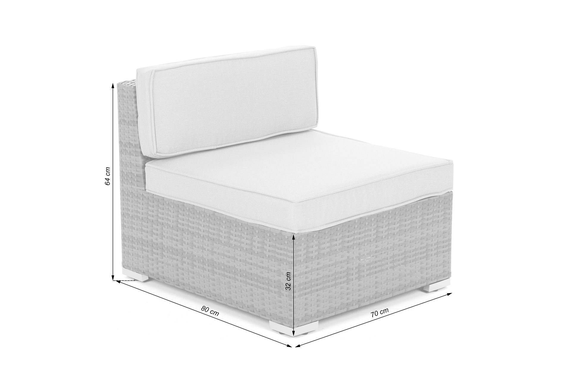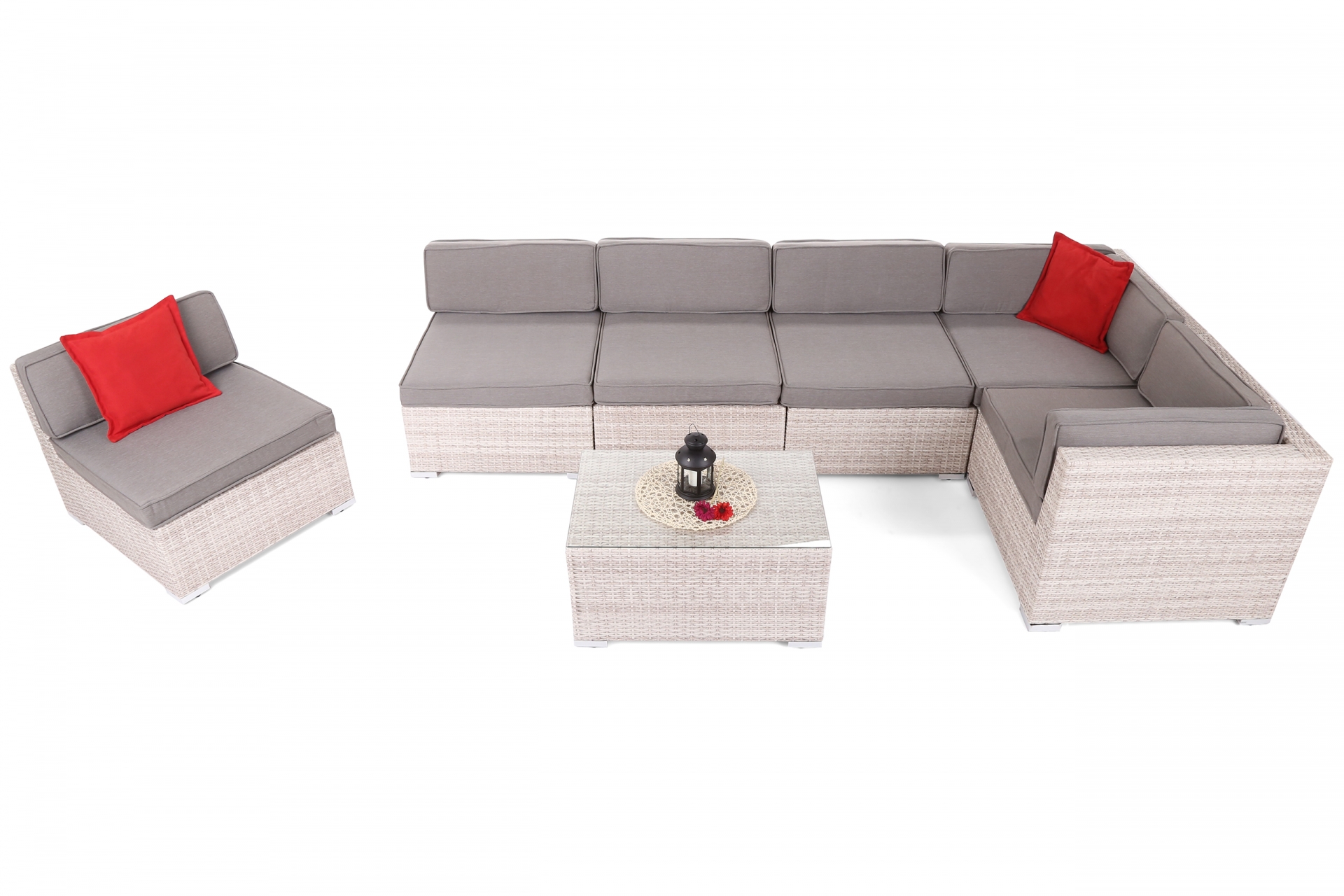 Středový segment rohového setu Kansas Maxi Beige je ideálním řešením pro větší rodinu nebo velkou skupinu přátel. Model Kansas je velmi praktický zahradní nábytek, který vám umožní uspořádat sedačku do vlastního a originálního rozvržení - díky snadnému upevnění lze snadno měnit uspořádání jednotlivých modulů. Jedná se tak o inovativní kombinaci stylového designu s jednoduchostí použití. Stojí za zmínku, že model Kansas je vyroben z odolného technoratanu, který hravě odolává vlivům počasí i UV záření a zachová si tak svůj vzhled i tvar po dlouhou dobu používání.