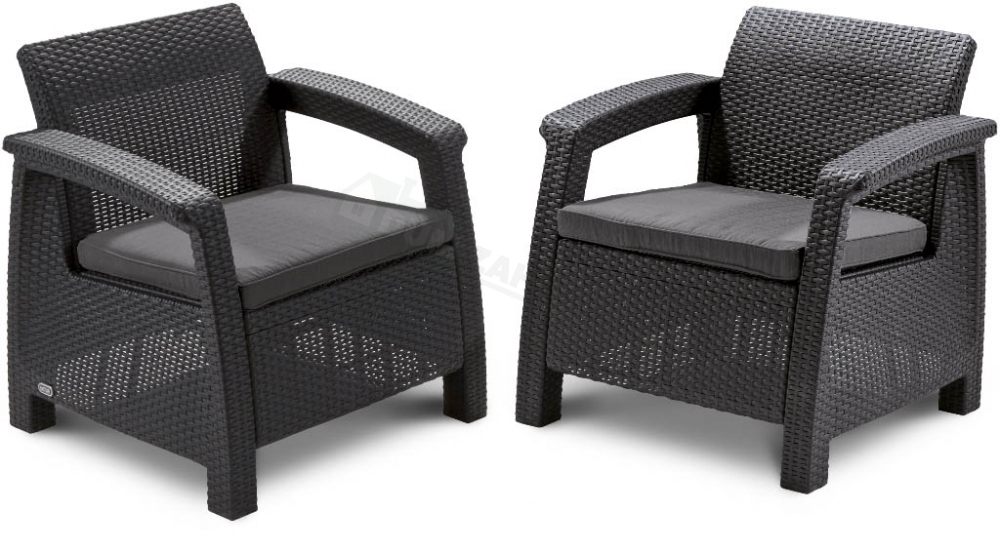 Zahradní set Corfu Weekend tvoří 2 pohodlná křesla a stolek. Komplet z vysoce kvalitního plastu v imitaci přírodního ratanu grafitové barvy. Křesla jsou doplněna o polstrované sedáky pro větší komfort. Sestava je pro své rozměry vhodná na balkóny, menší terasy a zahtrady.