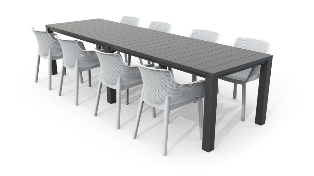 Jídelní stůl KETER JULIE DOUBLE - 295 x 90 x 74,5 / 147,5 x 180 x 74,5 - grafitový