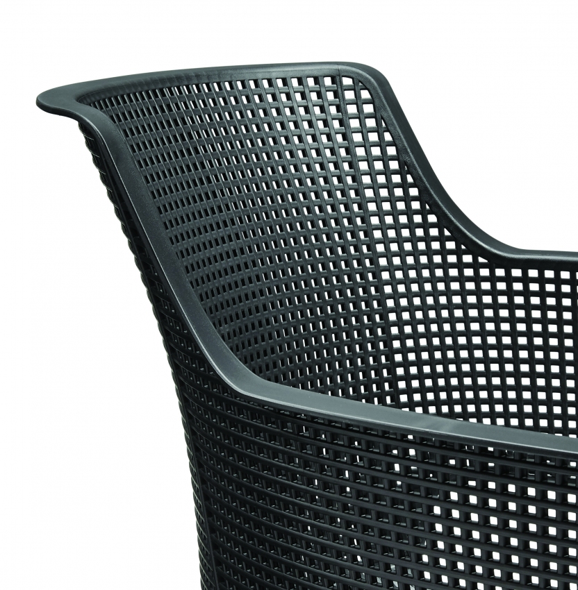 Profilované opěradlo a sedák, stejně jako měkká zaoblená linie područek jsou nepochybně přednostmi tohoto produktu. Moderní síťovaná struktura, snadno se čistí a stohuje z jedné židle na druhou. Ideální na vaši zahradu či terasu.