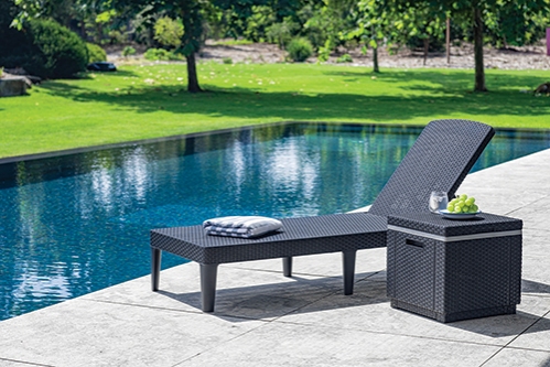 Zahradní lehátko Jaipur se vzhledem imitace přírodního ratanu s nosností 110 kg poskytne pohodlí při odpočinku na zahradě, terase či u bazénu. Chytrý design umožňuje složení lehátka na velikost malého praktického kufříku, který můžete snadno odnést tam, kam potřebujete, a zároveň tak usnadňuje i jeho skladování. Opěradlo lze polohovat - čtyři stupně nastavení podle potřeby. Čistěte měkkým hadříkem namočeným ve vodě. Odolné vůči povětrnostním vlivům a UV záření, vyrobené z recyklovaného plastu.