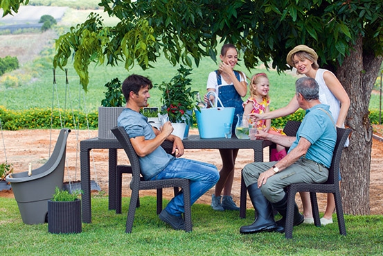Melody je elegantní a praktický zahradní stůl, který dokonale doplní i větší domácí prostory, jako je terasa nebo zahrada. Originální povrchová úprava po okrajích desky a na nohách, která napodobuje vzhled přírodního ratanu, z něj dělá ideální stůl jak do tradičně zařízeného, tak do moderního prostředí. Široká, obdélníková deska s přehledem poskytne dostatek jídelního prostoru až pro 6 osob. Za slunečných dnů lze do otvoru v jeho desce umístit slunečník.