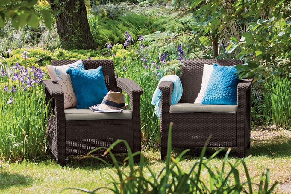 Pohodlný a estetický zahradní komplet Corfu se vyznačuje vysoce kvalitním zpracováním. Komplet v tmavě hnědém odstínu tvoří 2 křesla společně se stolkem a sofa vyrobeným z polypropylenu v imitaci příprodního ratanu. Díky použitým materiálům je komplet odolný vůči povětrnostním vlivům i UV záření. Pro větší pohodlí je komplet doplněn o polstrované sedáky. Tato sestava nábytku Allibert Corfu Brown je idálním doplňkem pro pohodlné trávení času v zahradách nebo na terasách.