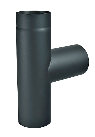 Kouřovod ke krbovým kamnům tvaru T o průměru 120 mm v černé barvě.