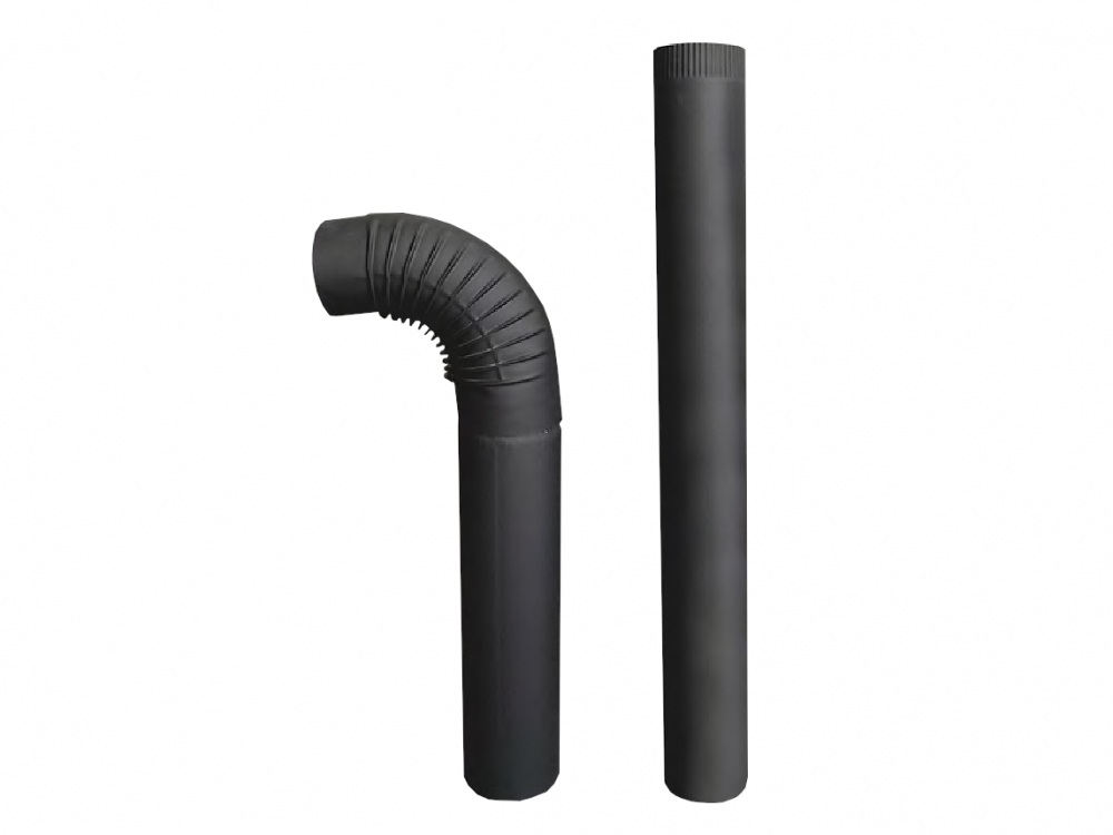 Koleno kouřovodu je ošetřeno černou žáruvzdornou barvou.