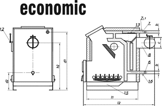 Ocelový kotel Economic s vysokou mírou úspory dostupný ve výkonu 55 kW, ve kterém je možné topit dřevem o délce polen cca 40 cm.