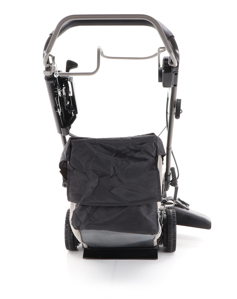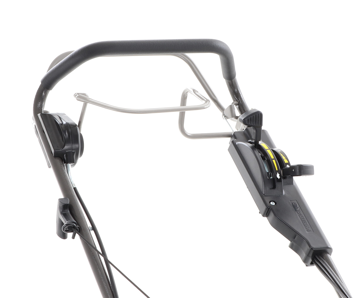 Pogumovaná sendvičová AL kola jsou uložena v oboustranných kuličkových ložiscích, centrální nastavení výšky sečení je u této značky samozřejmostí. Velkým nadstandardem u této sekačky je použita speciální profi BBC spojka nože, která je schopna vypínat i zapínat žací nůž i při trvalém běhu motoru.Tato funkce může eliminovat škody na sekačce způsobené nárazem nože do překážky. Ergonomická rukojeť s ovládacími prvky otáček motoru a speciální povlak na obvodu sběracího koše, který stimuluje proud vzduchu, aby se neprášilo na obsluhu.