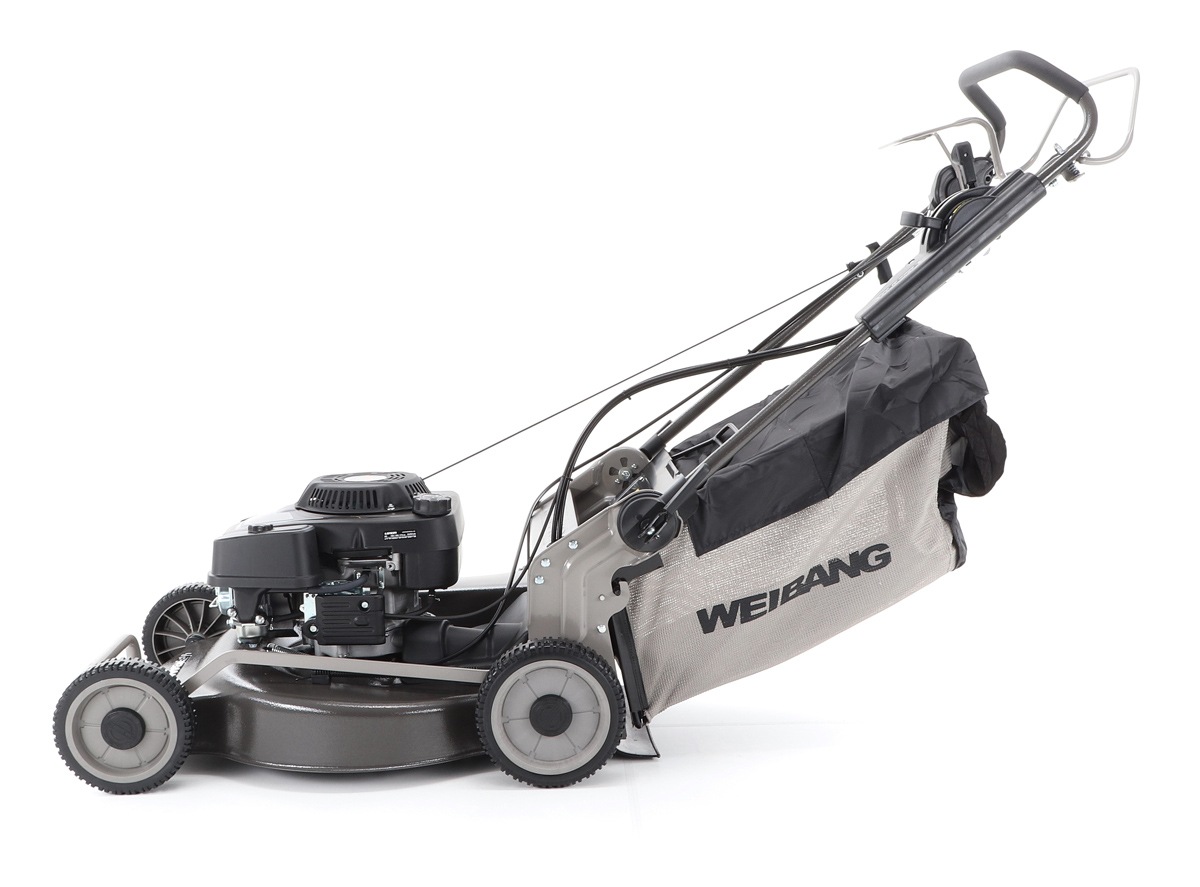 Dále je tato sekačka vybavena pevnými zadními AL koly a sklopnou rukojetí pro snadné uskladnění a přepravu. Masivní žačí nůž s mohutnými vyhazovacími "lopatami - tzv. BIG BLADE" a velký koš spolu se zajímavou cenou dělají z této sekačky WEIBANG WB 537 SCV BBCPRO kvalitního pomocníka s bojem proti zelenému živlu v profesionálním težkém nasazení. Dalším velkým unikátem je motor, který patří mezi to nejlepší co výrobce WEIBANG v této třídě nabízí. Jedná se o profesionální silný motor rozvodu OHV o výkonu 7 HP a vysokým kroutícím momentem 10,5 Nm. Velkou výhodou této sekačky WEIBANG WB 537 SCV BBCPRO je řešení pojezdu za pomocí hřídelového kardanového pohonu. Jedná se o unikátní bezztrátovou technologii pojezdu, bez použití klínového řemene.