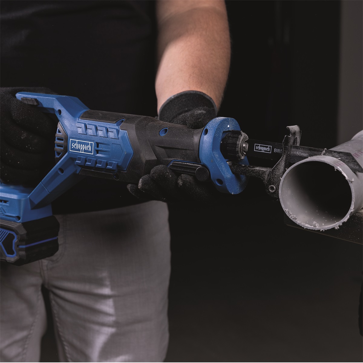 Scheppach BC-RS250-X je výkonná akumulátorová pila ocaska, která je ideálním řešením pro snadné a efektivní řezání dřeva, plastů, neželezných kovů a stavebních materiálů (s použitím vhodného pilového listu).