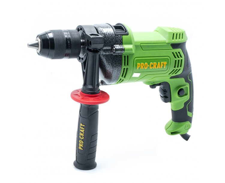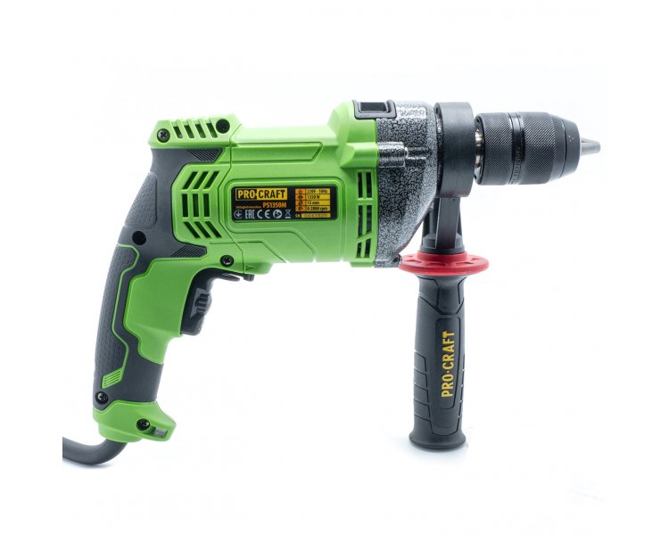 Elektrické příklepové vrtačky Procraft PS1350 a PS1350M jsou určeny k vrtání do dřeva, betonu a kovu. Regulace otáček umožňuje nastavení optimálních parametrů při práci s různými materiály. Silný motor s výkonem 1050 W a vysokých otáček až 2950 zaručuje dlouhou bezporuchovou práci. Funkce vrtání s příklepem usnadní a zrychlí práci s cihlou, betonem a kamenem. Rychloupínací sklíčidlo u vrtačky PS1350M umožňuje snadné a rychlé upnutí vrtáků a stopkových nástrojů do průměru 13 mm. Možností změny směru otáček dovoluje povolování a utahování šroubů. Součástí dodávky jsou uhlíkové kartáče. Balení karton.
