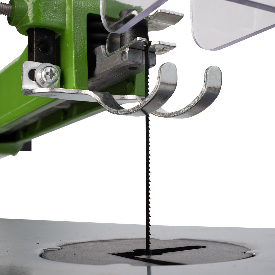 S regulací chodu pilového plátku umožňuje nastavení optimálních parametrů při práci s různými materiály. Vybavená lampou pro osvětlení pracovního prostoru. Součástí dodávky je montážní klíče. Balení karton.