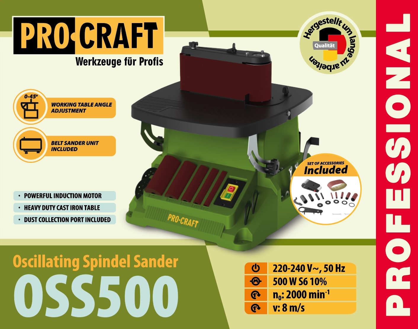 Pásová a vřetenová bruska Procraft OSS500 je určena k zabroušení oblých okrajů, zakřivených nebo nepravidelných hran, vnitřních výřezů výrobku z epoxidu, dřeva a plastu. Silný motor s příkonem 500 W zaručuje dlouhou bezporuchovou práci. Možnost připojení vysavače zaručí čisté pracovní prostředí. Součástí dodávky jsou brusné válce, brusné objímky a brusný pás. Balení karton.