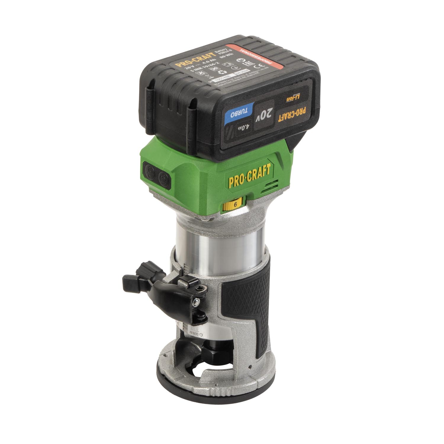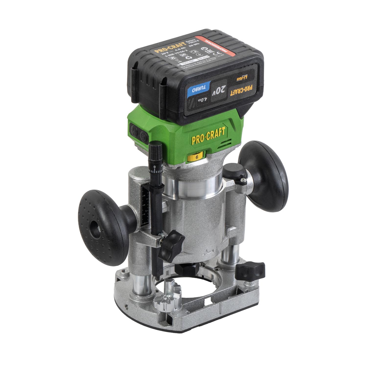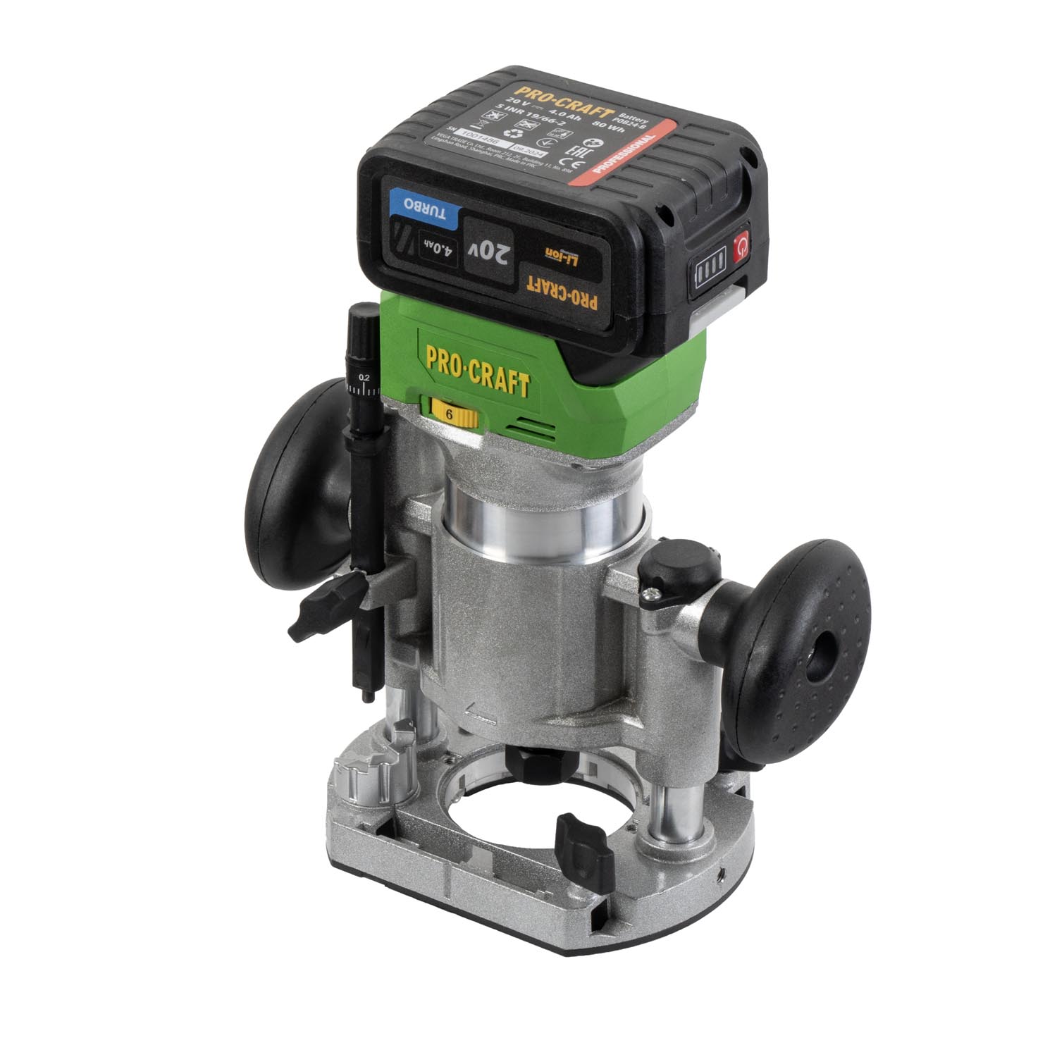 Procraft POB24-1b-f 20V SET - akmulátorová horní frézka s příslušenstvím 3v1 (s 4,0 Ah akumulátorem a nabíječkou)