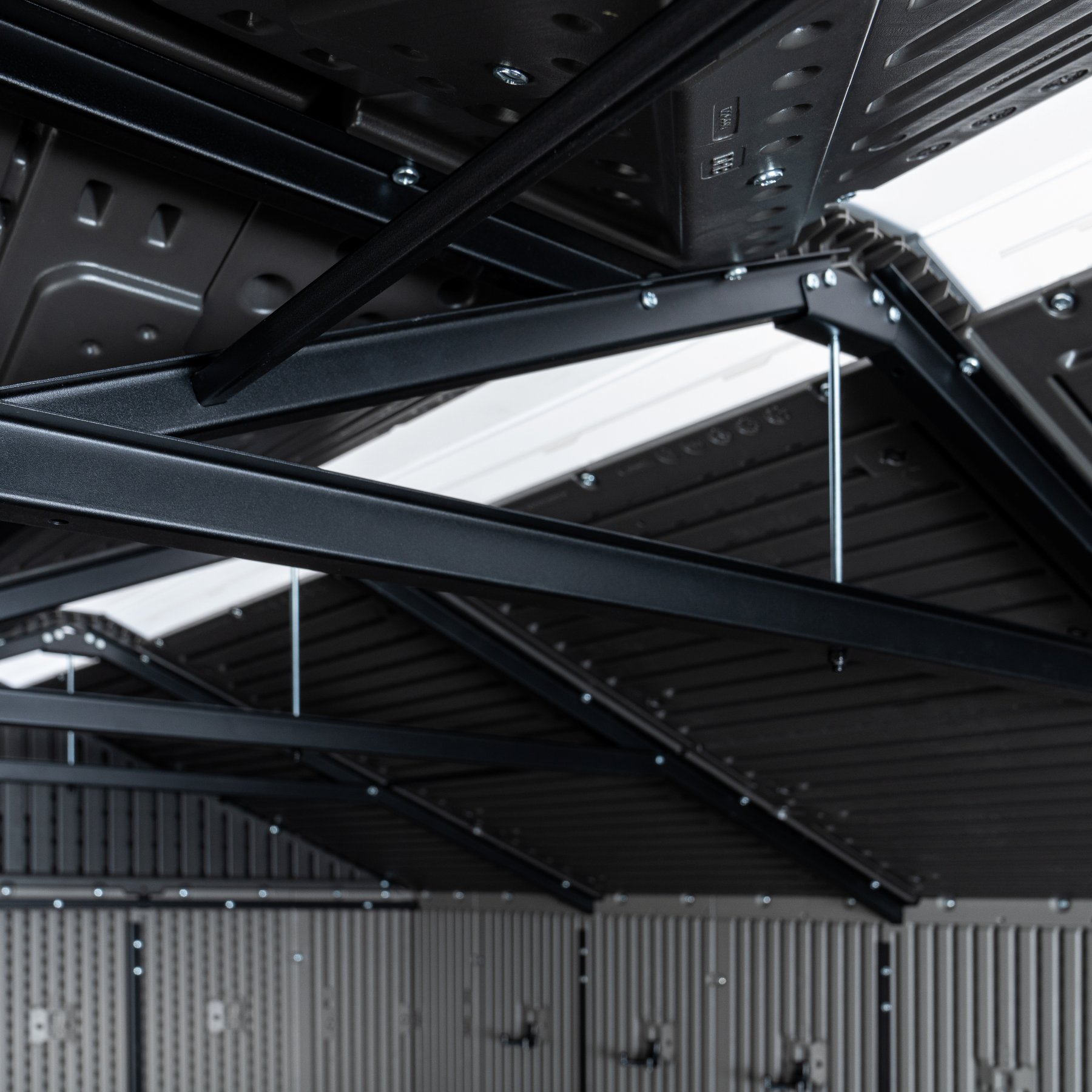Robustní plastový domek "nové generace" k uskladnění zahrádkářských, sportovních, bazénových, grilovacích, campingových, motoristických a dalších potřeb. Moderní design, snadná montáž, celoroční použití. Zahradní domek má nosnou kovovou konstrukci a dvojité stěny, střecha, dvojité dveře, podlaha jsou vyrobeny z masivního velmi odolného a prakticky nerozbitného plastu. Plastová protiskluzová podlaha je součástí domku (je v ceně). Domek je vybaven dvoukřídlými dveřmi na pantech. Síla dvojité plastové stěny je 26 mm. Sklon střechy je 30o, což výrazně snižuje množství a tlak sněhu na střechu. Materiál domku (extrémně odolný polyethylen s UV filtrem) nežloutne ani nekřehne, takže odpadá pravidelné natírání domku jako je nutné v případě např. dřevěných domků - zahradní plastový domek je prakticky bezúdržbový. Domek je navržen a vyroben tak, aby montáž byla co nejjednodušší a nejkratší. Jednotlivé díly pouze zaklapnete do sousedních dílů a spoj zajistíte šroubkem.