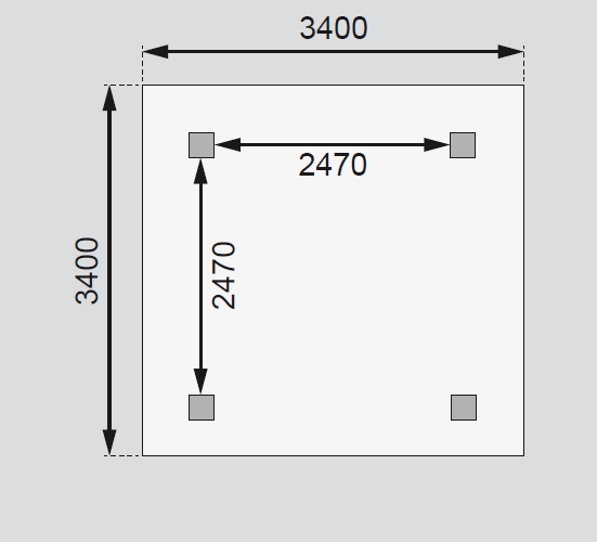 Pavilon má základní čtvercový tvar a díky vnitřnímu rozměru 2,47 x 2,47 m nabízí dostatek prostoru pro letní posezení, grilování, relaxaci i rodinnou oslavu. Celková zastřešená plocha je 3,40 x 3,40 m. Výška boku je 1,99 m a výška hřebene 2,90 m. Čtyři sloupky 9 x 9 cm podpírají střechu s masivními příčnými podpěrami. Konstrukce altánu je tlakově impregnována a je tak dobře chráněna proti dřevokazným houbám i hmyzu, ale i proti nepříznivým povětrnostním podmínkám. Impregnace je zdravotně nezávadná a naprosto bezpečná. Vzhledem k velkým plochám střechy a zatížení větrem je nutné připevnit altán k zemi pomocí odpovídajících H kotev v délce cca 60 cm (nejsou obsahem dodávky).
