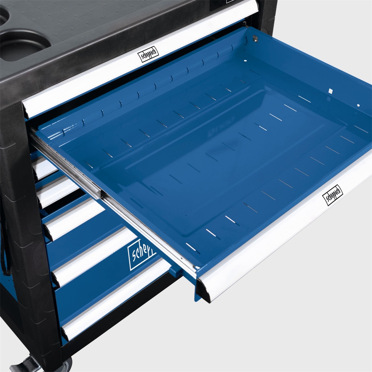 Horní odkládací plocha je doplněna o praktický držák, který umožňuje mít často používané nástroje stále na dosah, aniž byste museli otevírat zásuvky.