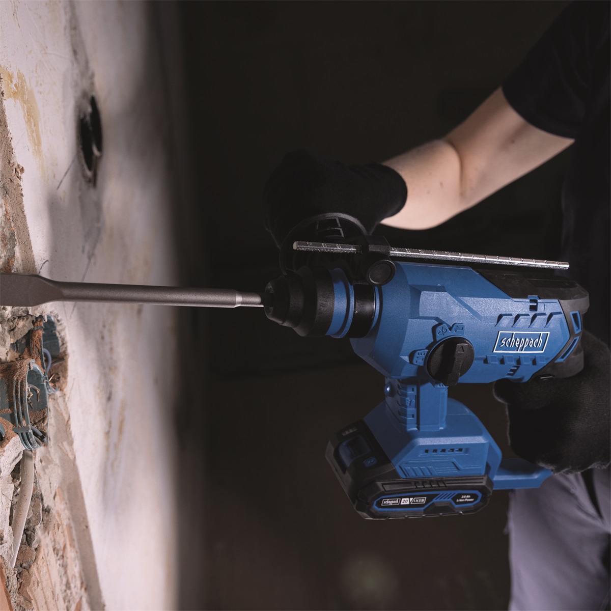 Scheppach BC-RHD230-X je skvěle vybavené, kompaktní, multifunkční akumulátorové kladivo, které se skvěle hodí na všechny běžné stavební práce, a to i tam, kde není přísun elektrické energie.