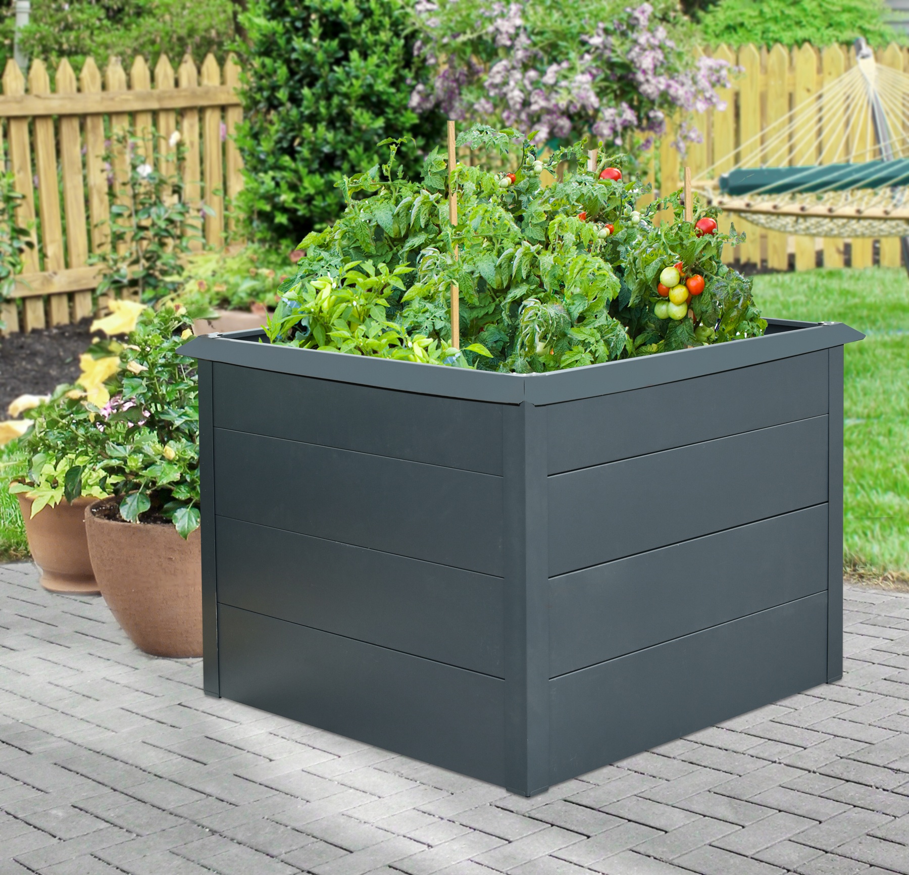 Vyvýšený záhon LANITPLAST PLANT 100 je čtvercový plechový záhon pro pěstování bylinek nebo květin. Květiny, bylinky, zeleninu, to vše můžete svobodně umístit prakticky kdekoliv na zahradě. Záhon nemá dno. Při vrstvení půdy ve vyvýšeném záhonu doporučujeme strukturu půdy přizpůsobit rostlinám. Záhon je složen z několika dílů, které se pouze jednoduše sešroubují. Záhon je vybaven speciálním okrajovým lemem proti slimákům. Ocelový plech síly 0,6 mm má velmi kvalitní povrchovou úpravu, protože je galvanicky pozinkovaný (na povrchu je vytvořená silná vrstva ochranného nekorodujícího zinku) plus je nastříkán vypalovací práškovou barvou v odstínu antracit RAL 7016.