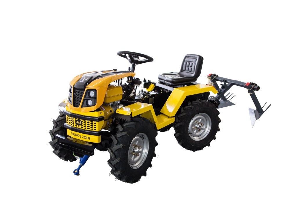Malotraktor Tauros ZX18 4x4 je multifunkční, výkonný pomocník pro zahrádkáře, sadaře i drobné farmáře. V nové generaci těchto strojů přichází s řadou praktických vylepšení a modernizací, které dále zvyšují komfort obsluhy a rozšiřují jeho možnosti využití. Tauros ZX18 4x4 představuje skutečný posun od kultivátoru k plnohodnotnému víceúčelovému traktoru – za cenu, která je dostupná i pro hobby farmáře a náročnější zahrádkáře. Na rozdíl od jednoosých strojů typu Vari nebo Tera, které jsou omezené výkonem, stabilitou i možností nesení příslušenství. Tauros ZX18 4x4 je skutečný traktor v malém balení. Robustní rám, pevná náprava a pohon všech kol poskytují nesrovnatelně vyšší trakci a stabilitu i v kopcovitém terénu nebo na mokré půdě. Zatímco jednoosé kultivátory vyžadují vedení obsluhou, Tauros ZX18 4x4 se řídí volantem a ovládá z pohodlného sedadla, což šetří čas i vaše záda.