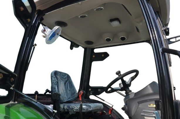 | BEZPEČNOST Základní verze malotraktoru je nabízena s vyhřívanou, pohodlnou kabinou, bezpečnostním rámem a vzduchovou soustavou pro brždění vleku. |