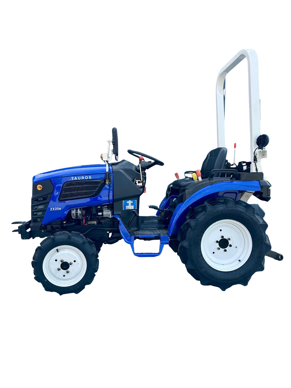 Malotraktory řady Tauros ZX25 nabízí kvalitní zpracování, kompaktnost a skvělou výbavu s možností přihlášení na SPZ. Jsou dostupné rovněž s čelním nakladačem TZ02, který výrazně rozšiřuje jeho možnosti při manipulaci s materiálem – umožňuje snadné nakládání, vykládání a převoz zeminy, štěrku, kompostu, hnoje či sypkých hmot, stejně jako práci s paletami, odklízení sněhu nebo údržbu zpevněných ploch a obecních prostor.