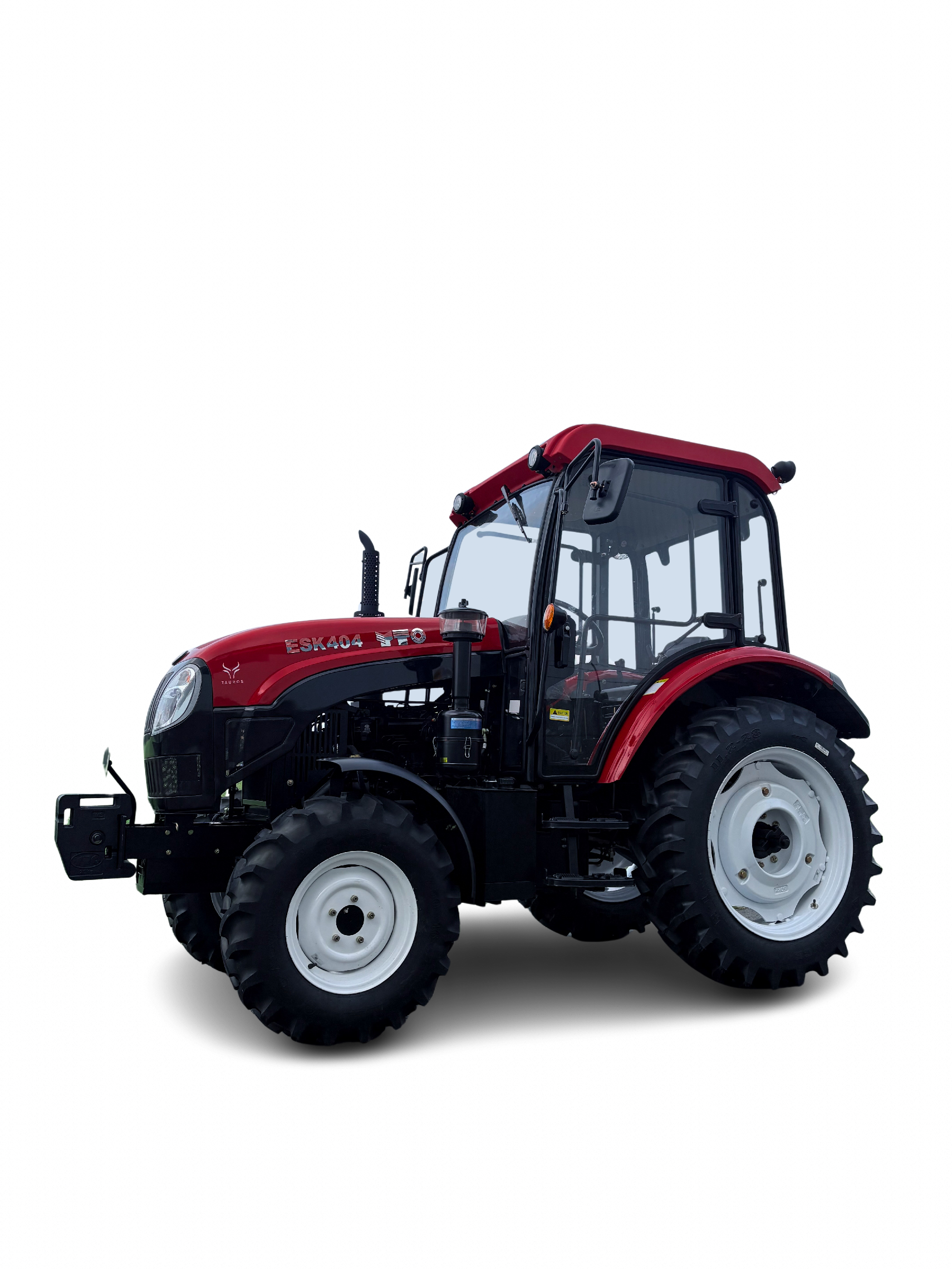 YTO ESK404 je malotraktor 4x4 s možností vypínání předního náhonu. Tento malotraktor je poháněn čtyřválcovým motorem YTO YND490T. Díky jednoduché mechanické konstrukci nabízí nízké provozní náklady, snadnou údržbu a dlouhou životnost. Základní konfigurace malotraktoru zahrnuje převodovku 8 rychlostí vpřed a 2 vzad (8F+2R), v případě provedení s čelním nakladačem je osazen reverzní převodovkou 8F+8R shuttle pro snadné manévrování. Traktor je vybaven kabinou s topením nebo otevřeným ROPS rámem s přístřeškem, výkonnou hydraulikou se dvěma okruhy, vývodovou hřídelí PTO 540/1000 ot./min a vzduchovými brzdami. Jedná se o ideální stroj pro ty, kteří hledají maximální užitnou hodnotu bez zbytečné složitosti. Silnou stránkou modelu ESK404 je i všestrannost a připravenost pro práci s příslušenstvím – od sečení a nakládání po zimní údržbu.