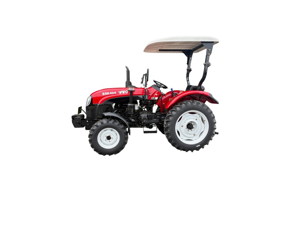 YTO ESK404 je malotraktor 4x4 s možností vypínání předního náhonu. Tento malotraktor je poháněn čtyřválcovým motorem YTO YND490T. Díky jednoduché mechanické konstrukci nabízí nízké provozní náklady, snadnou údržbu a dlouhou životnost. Základní konfigurace malotraktoru zahrnuje převodovku 8 rychlostí vpřed a 2 vzad (8F+2R), v případě provedení s čelním nakladačem je osazen reverzní převodovkou 8F+8R shuttle pro snadné manévrování. Traktor je vybaven kabinou s topením nebo otevřeným ROPS rámem s přístřeškem, výkonnou hydraulikou se dvěma okruhy, vývodovou hřídelí PTO 540/1000 ot./min a vzduchovými brzdami. Jedná se o ideální stroj pro ty, kteří hledají maximální užitnou hodnotu bez zbytečné složitosti. Silnou stránkou modelu ESK404 je i všestrannost a připravenost pro práci s příslušenstvím – od sečení a nakládání po zimní údržbu.