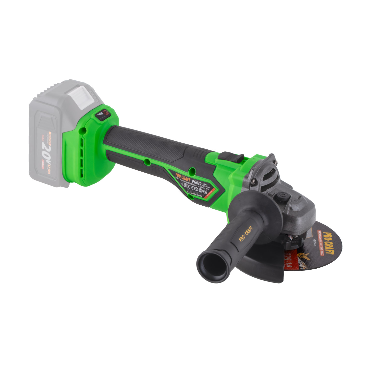 Procraft PGA22 20V - akumulátorová úhlová bruska (bez akumulátoru a nabíječky)